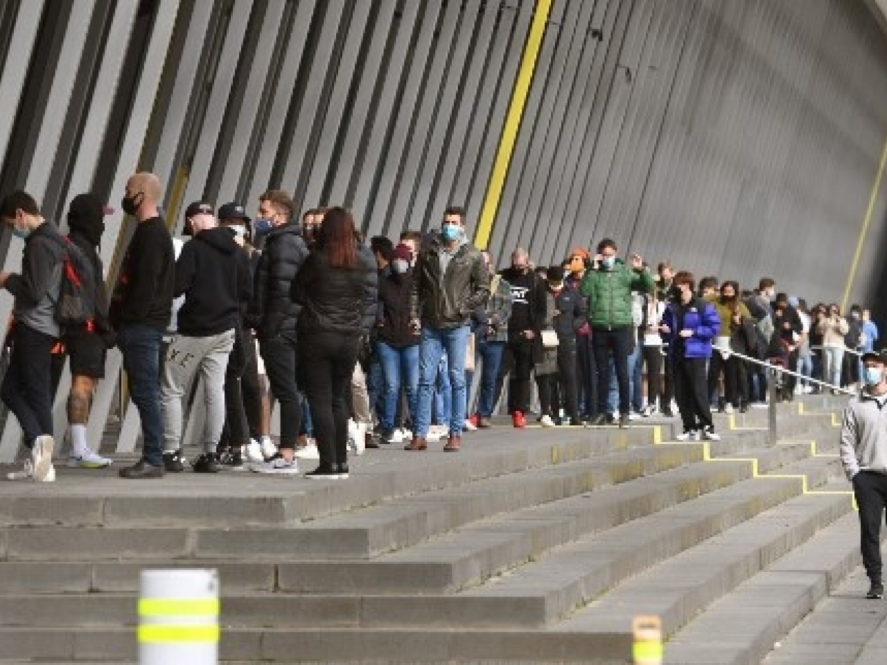 在墨爾本,有民眾輪候接種新冠疫苗。(法新社)