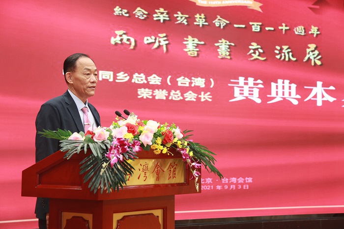 臺灣中華同鄉總會榮譽總會長黃典本在發言中表示兩岸同胞是血濃於水、同祖同宗的一家人,要共享身為中國人的榮光。開幕式上,黃典本向臺灣會館捐贈臺灣書畫家作品《兩岸一家人家和萬事興》,北京市臺聯秘書長張曉軍代表臺灣會館接受捐贈。