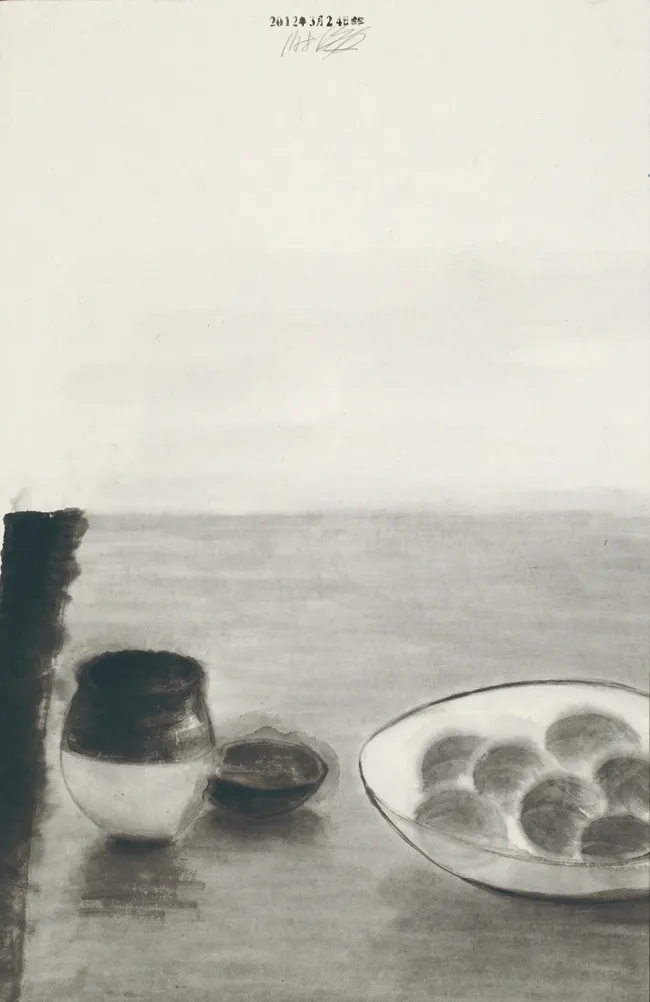 作为策展人的谢海没有邀约同行帮他统筹本次展览,但是,展览的叙事主线事实上已经“肉眼可见的清晰”。展览中,他各个阶段转折期的重要作品悉数出镜不是重点,主题涉及幸福生活、瞬间的意义以及思考的痛苦、执着的孤独也不是重点,重点的是他用水墨述说没有矫揉造作的真实,没有浓妆淡抹的日常。谢海一直坚持“精神修炼”,试图通过最为日常的实践,通过书写与阅读不断矫正、改变他看待世界的方式,从而改变自身。同时,谢海信奉歌德的“别忘记生活”,始终保持积极的状态,对话典范,思考当下,捕捉每一刻、每一步创作的幸福。因此,以美术史学史的角度看,在谢海的文本、绘画中经常出现的无疑就是“日常颂歌”这一相对恒定的主题,或者说,就是借水墨之壳探讨“作为生活方式的哲学”。