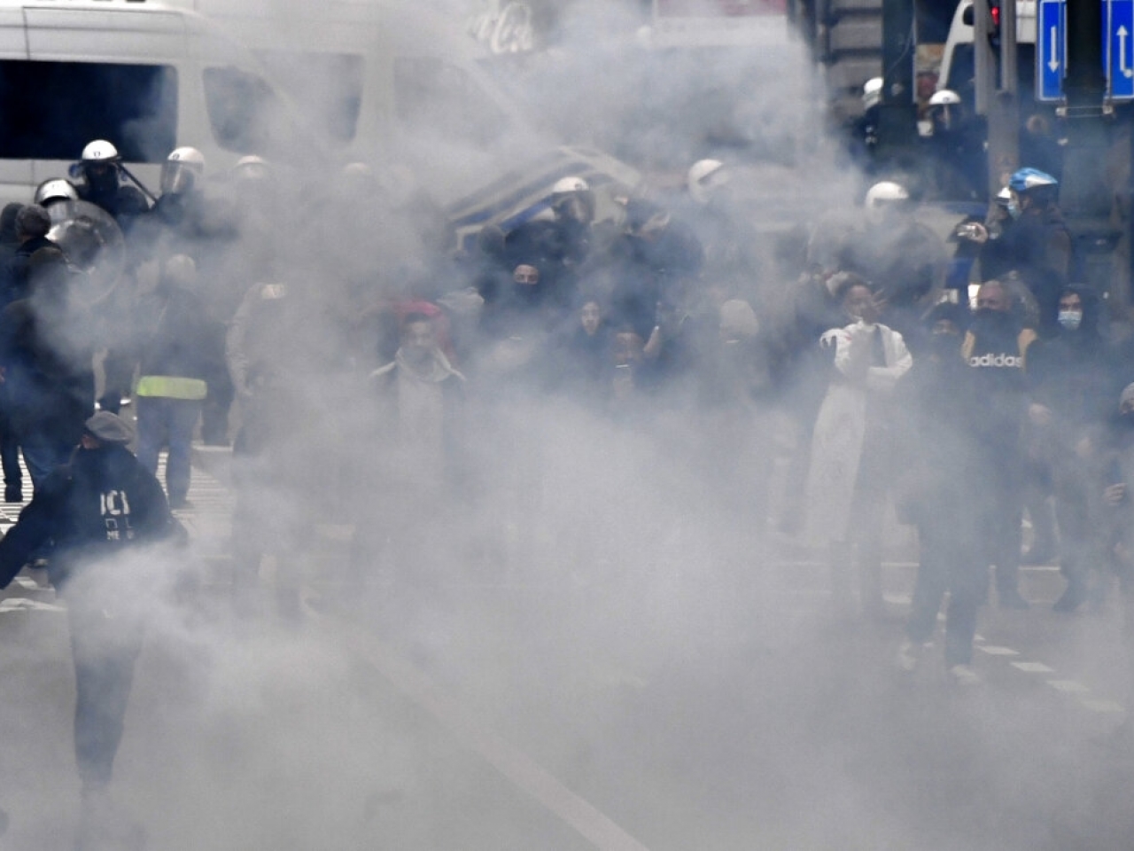 不滿當局實施防疫管制措施下,比利時民眾5日走上街頭抗議卻演變為暴力衝突,他們朝員警扔擲石塊與爆竹,警方則發射催淚瓦斯與強力水柱驅散群眾。