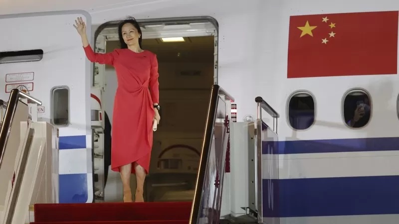孟晚舟曾被美國檢方指控「欺詐」。但中國外交部稱,對孟晚舟女士所謂「欺詐」的指控純屬捏造。圖為孟晚舟乘坐中國政府的包機於9月25日晚間抵達深圳。