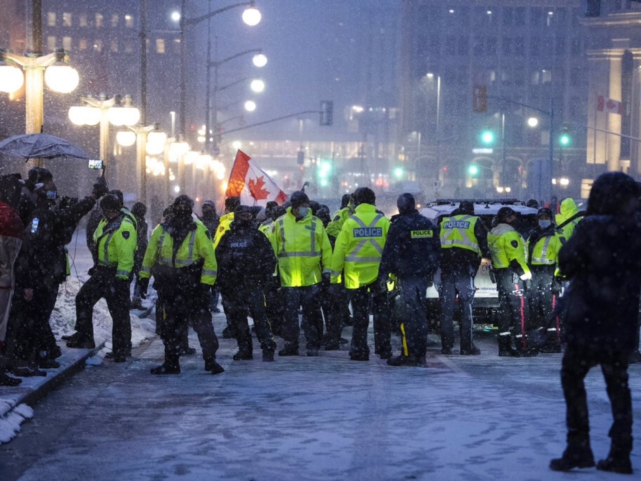 警方在渥太華市中心設立安全區域,禁止示威者進入,又在主要抗議地點和大型商住區周圍設置近100個檢查站。