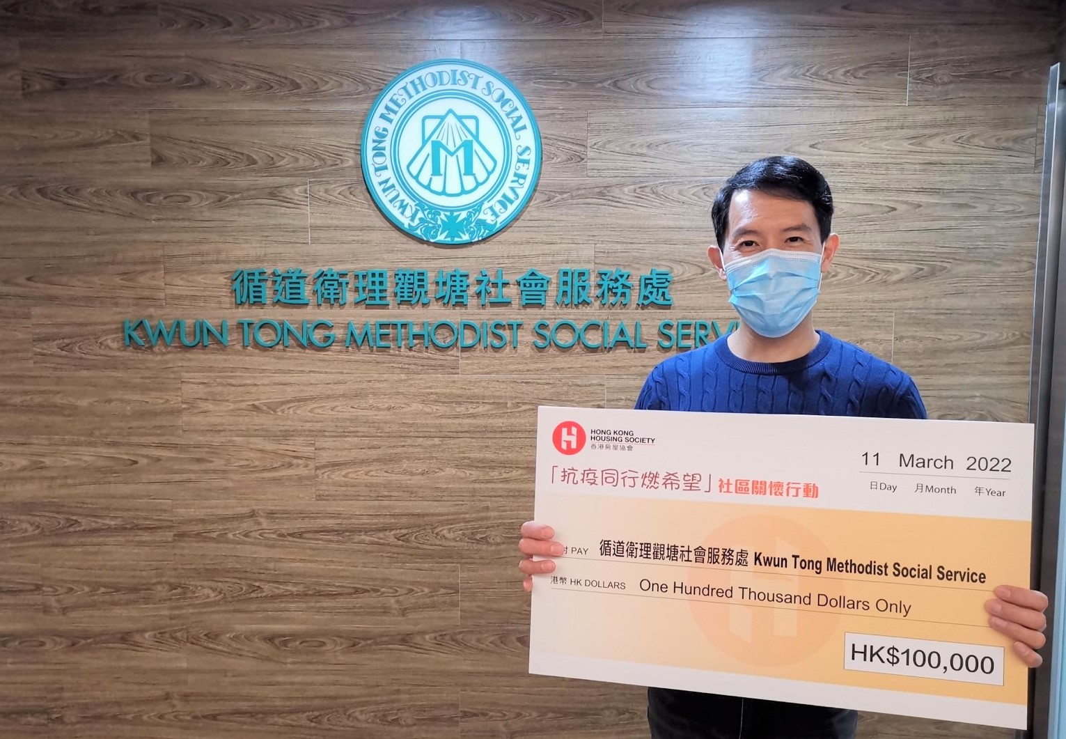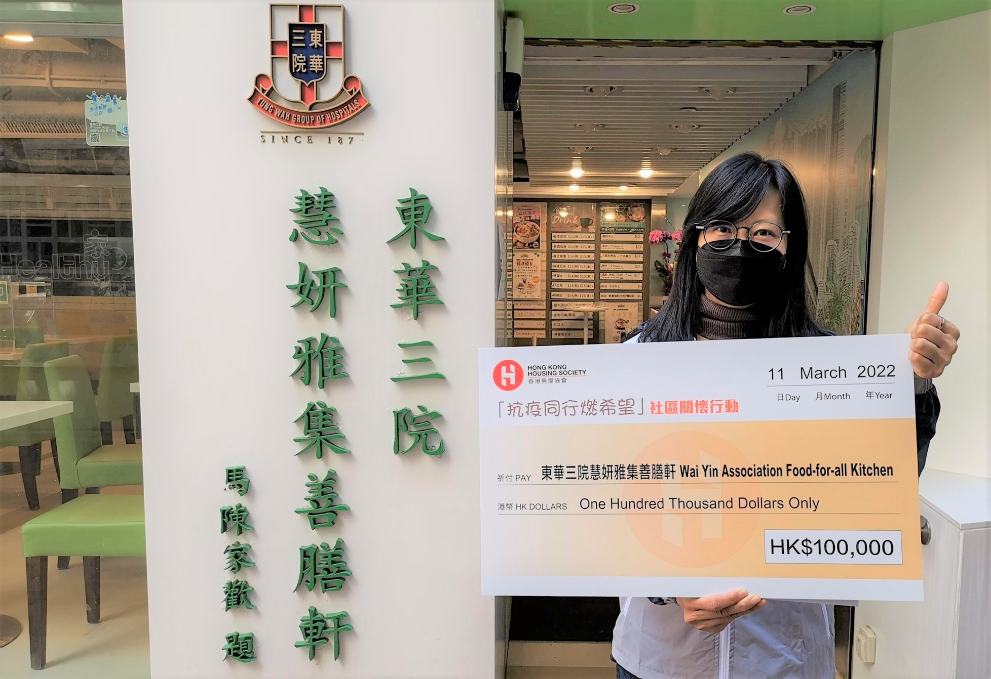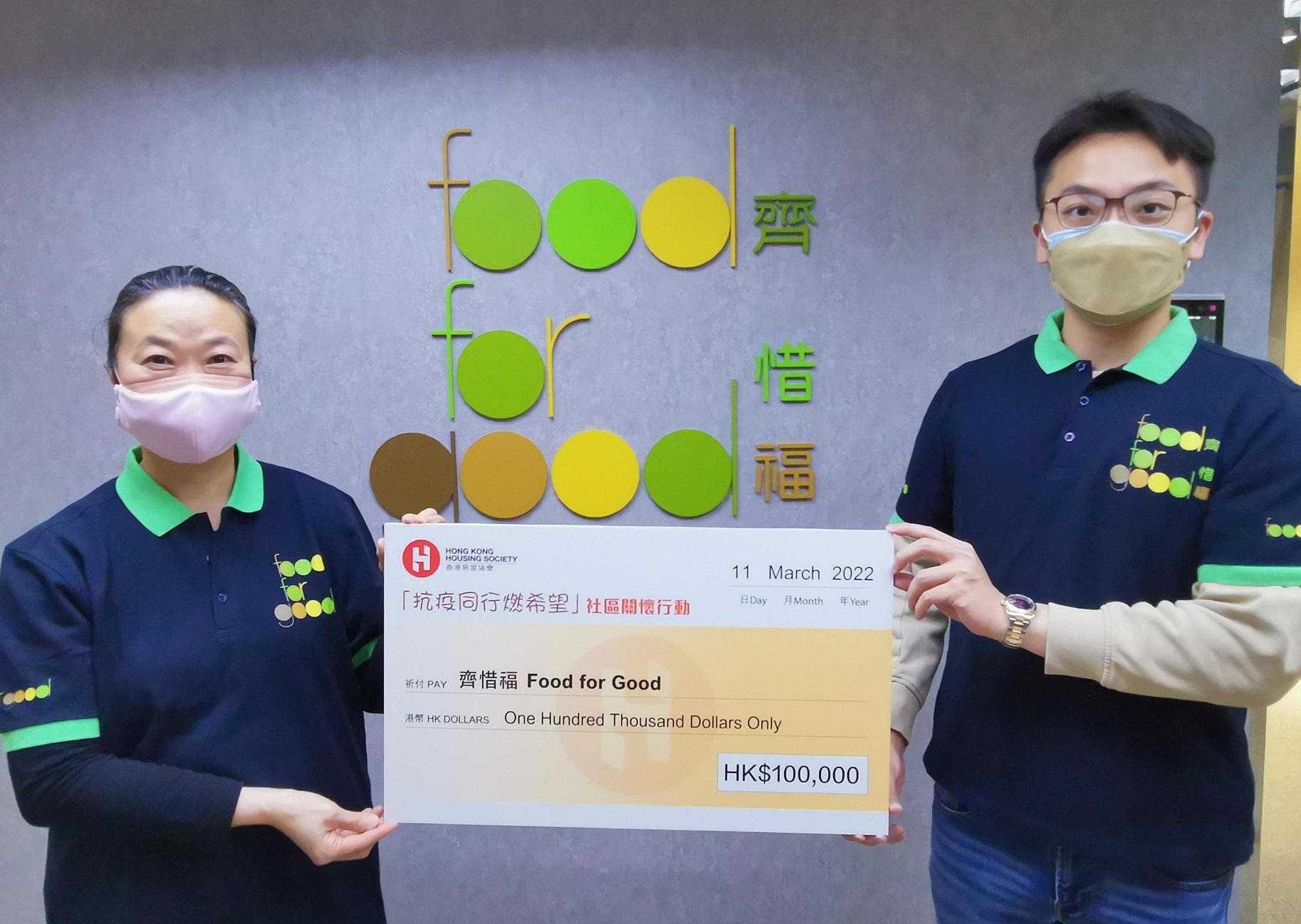 2) 捐款食物銀行、支援有經濟困難的房協屋邨租戶—房協 捐出港幣五十萬元予五間食物銀行及慈善團體。另外撥 出不少於港幣五十萬元為有經濟困難的房協屋邨租戶提 供財政支援,幫助有逼切需要的居民和人士解決燃眉之 急。