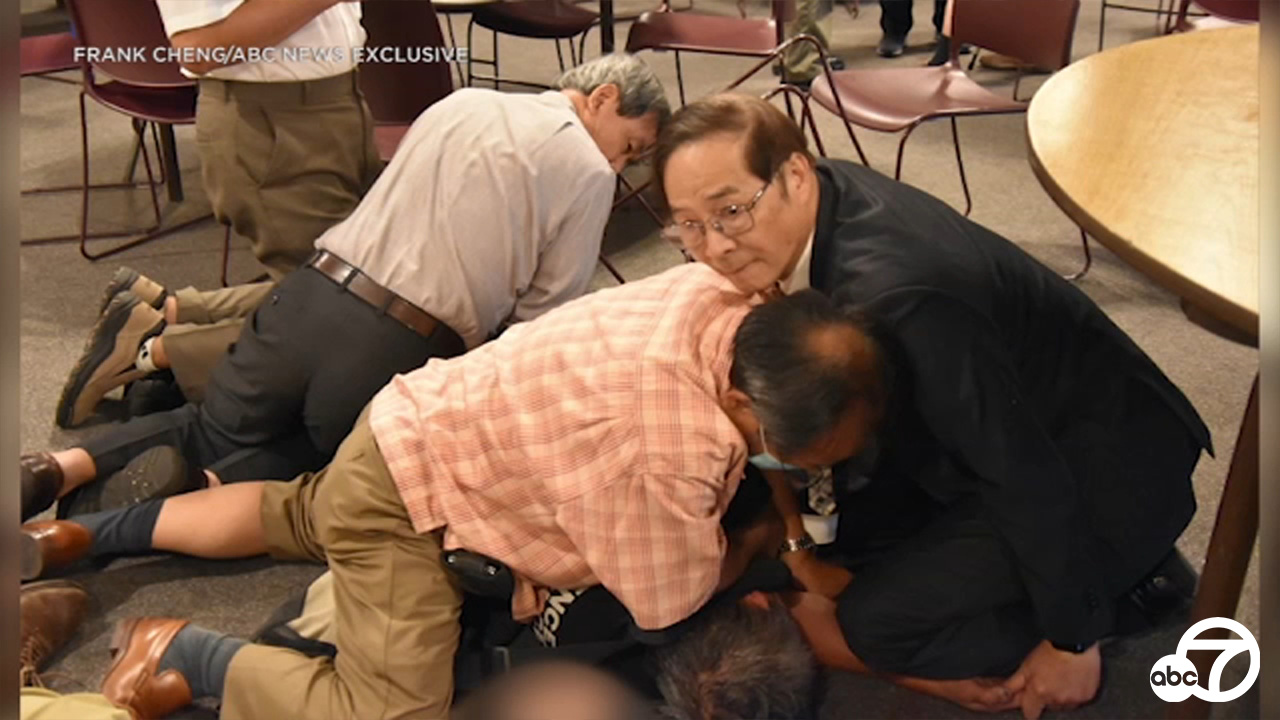 令人毛骨悚然的照片: #ABC7獲得的獨家圖片 顯示,大衛周在拉古納森林埃爾托羅路的日內瓦長老會教堂內被英勇的會眾制服的那一刻。 _