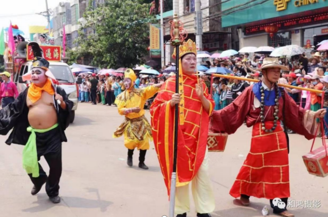 那日太阳渐渐从东边升起,古老而繁荣的多文镇迎来节日的欢乐。几里长街上人潮如织,锣鼓喧天,一支穿着不同色彩的盛装的游园队伍,伴着欢快的音乐从街头走来,有舞龙舞狮,天女散花,西游记唐僧师徒取经归来,八仙过海各显神通,南海观音座莲祈福,财神爷招财进宝,关公豪情送平安……令人们大饱眼福,