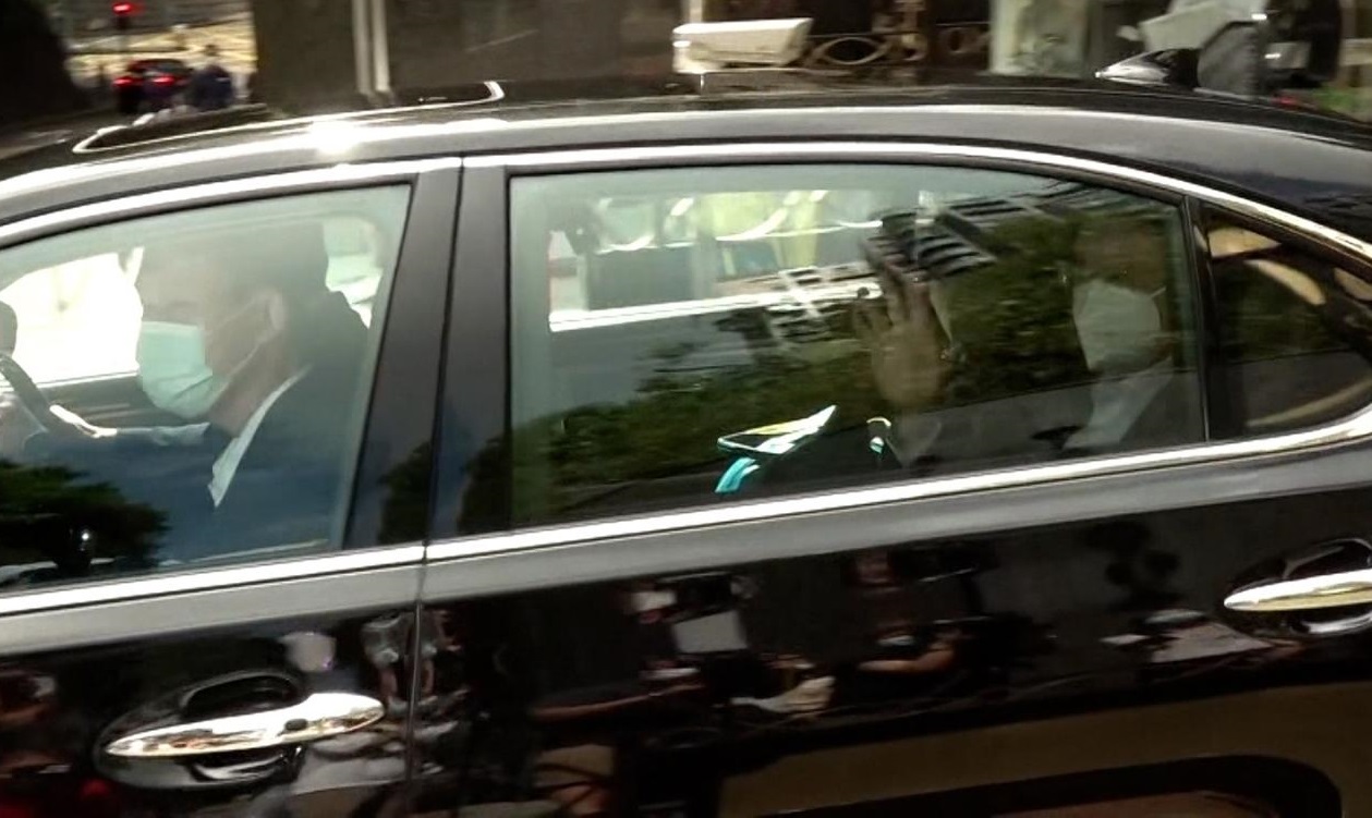 李家超今早乘坐私家車離開寓所,期間向在場等候的傳媒揮手。