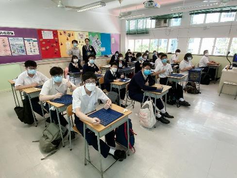 除了禮堂,各班學生在課室同步開始參與寫法。