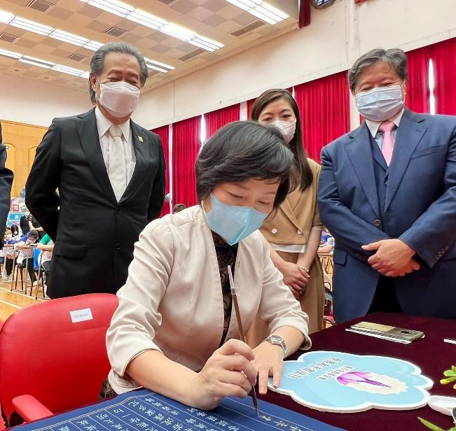 香港教育局局長蔡若蓮博士,JP與超過600師生共同參與書法活動創紀錄儀式。