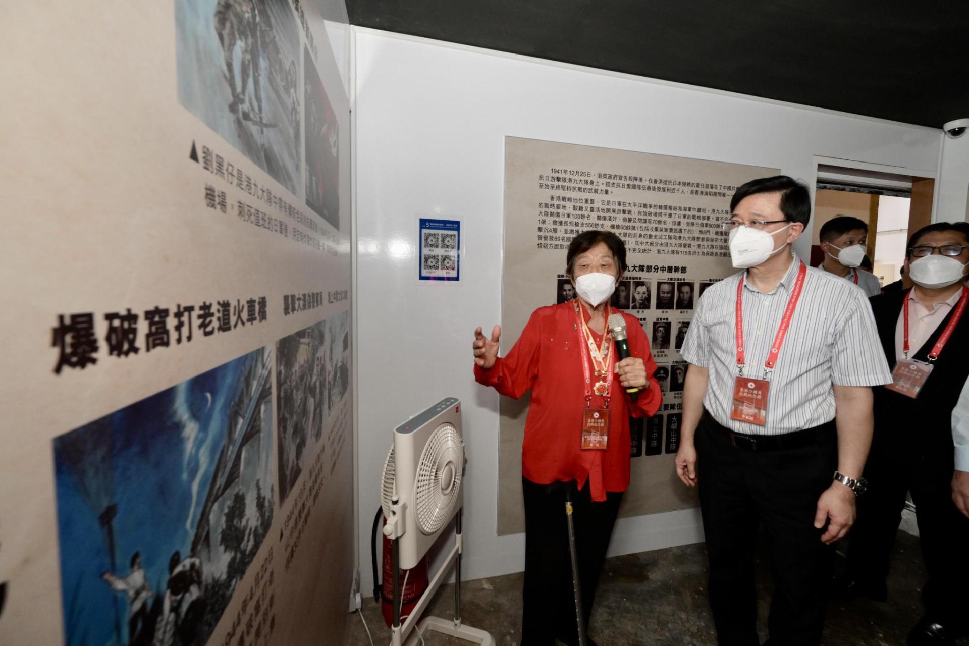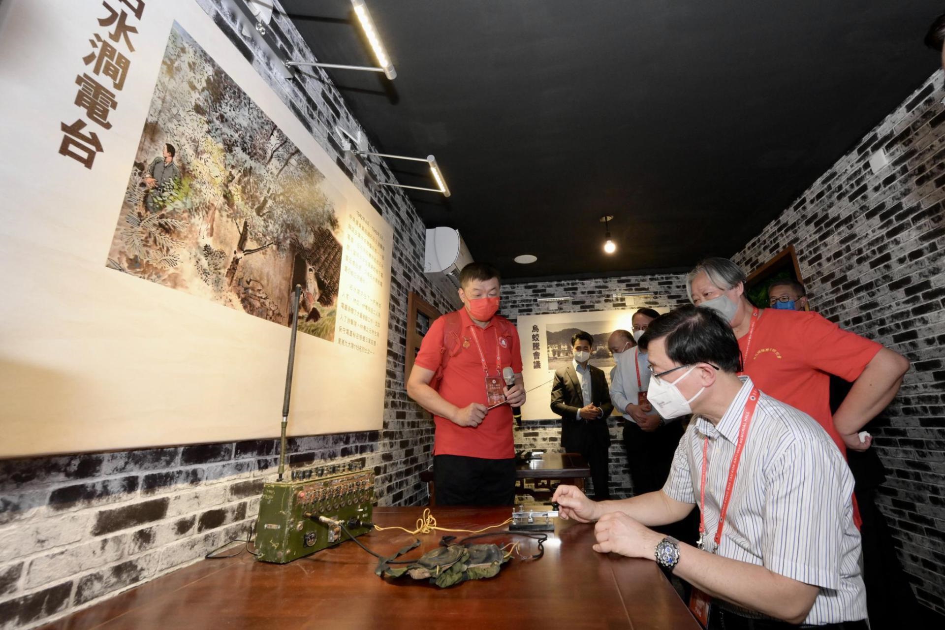 出席香港沙頭角抗戰紀念館揭幕典禮。圖示李家超(右二)參觀展覽。.jpg)