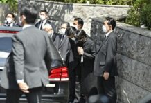 日本放送協會(NHK)報導,抱著安倍骨灰罈的遺孀安倍昭惠,下午1時26分搭乘座車從東京都澀谷區自宅出發,途中先經過安倍生前跟各國領袖舉行會談的主要舞台「迎賓館」,接著再經過負責安倍生前致力安全保障政策的防衛省,最後在1時55分抵達國葬會場。