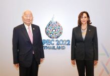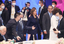 經濟領袖第一場閉門會議18日在泰國曼谷舉行,美國副總統賀錦麗(Kamala-Harris)(中)步入會場。前左為台灣領袖代表張忠謀。-218x150.jpg)