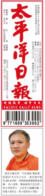 敬告社會各界,不良酒商 楊振遠,民國67年6月2日生 ,身分證字號F1286 43796 。常假借進貨需要資金周轉,向人借款,事後避居不定住所。特公佈其照片,以防他人繼續受騙!受害人張先生,柯小姐等多人同啟。