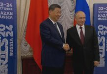 習近平和普京周一的“非正式”單獨會談持續了四個半小時。結束時,俄羅斯總統普京將他的客人習近平送到了克里姆林宮的外邊。