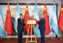 國務委員兼外長秦剛在北京與洪都拉斯外長雷納舉行會談,並簽署《中華人民共和國和洪都拉斯共和國關於建立外交關係的聯合公報》,提到根據兩國人民的利益和願望,決定自公報簽署日起,相互承認並建立大使級外交關係。