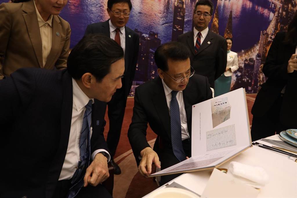 袁家軍對馬前總統說,馬先生這次為了尋根祭祖,為了兩岸和平而來,他們也應該做些什麼,因此同仁們找了舊資料,特別集結成冊,作為此行的紀念品。