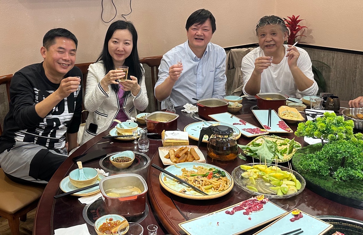 曾曉輝教授一行於4月13日中午抵達南寧,便應邀出席廣西潮州商會負等舉辦的歡迎午宴,午宴設潮汕籍許建鑫先生開辦的「小黃牛潮汕牛肉火鍋店」,出席午邀還有曾曉輝教授邀請來的廣西大學藝術學院前院長帥民風、教授,廣西大學文學院、紅樓夢專家張惠教授並交流。
