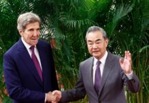 (中華新聞通訊社/中華時報7月17日訊)中國氣候變化事務特使解振華在北京飯店,與訪華的美國總統氣候問題特使克里舉行會談。