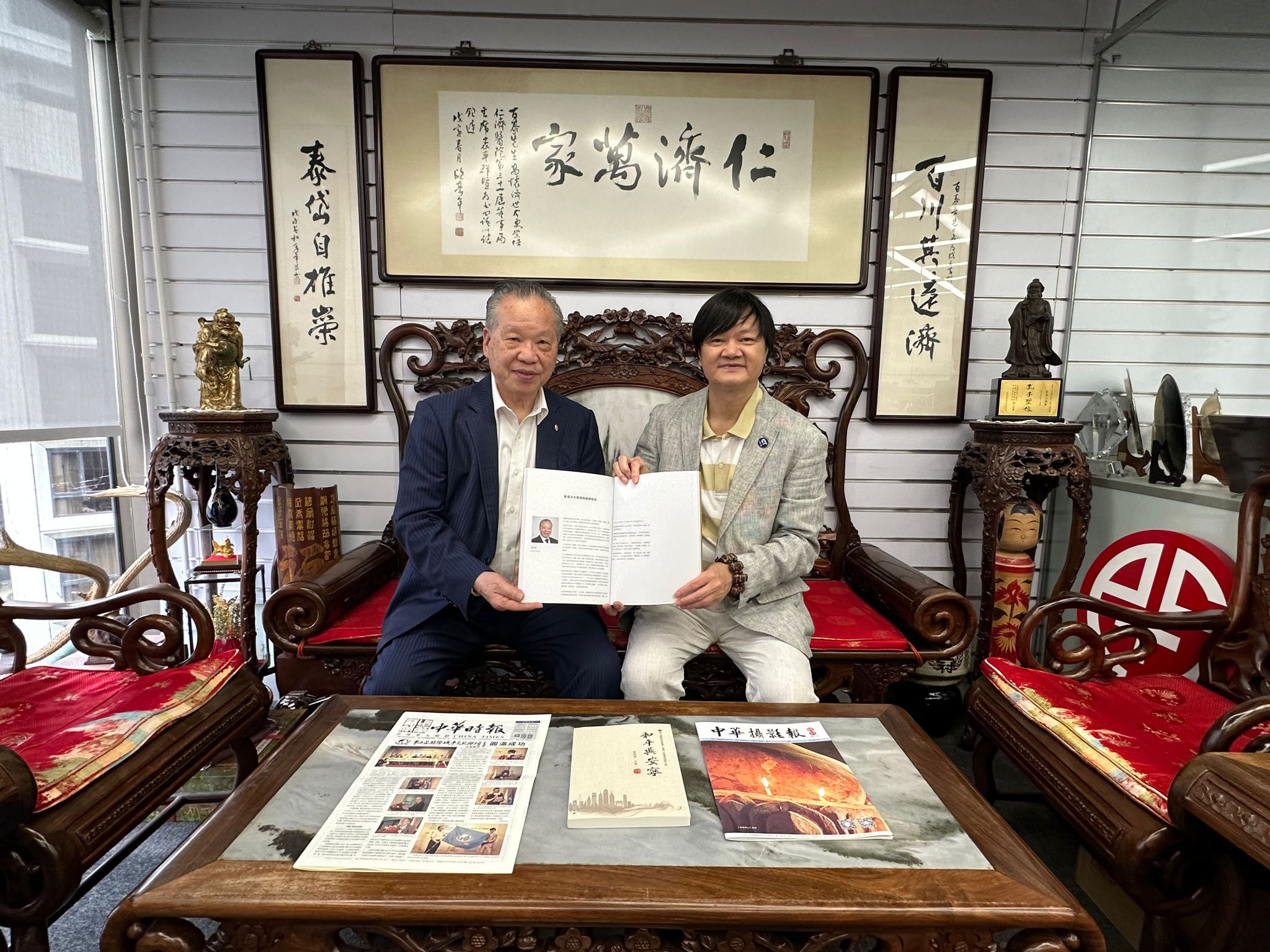 (中華新聞通訊社/中華時報7月18日訊)今天中午,香港藝術研究院院長、香港美術學院院長、中華時報傳媒集團主席曾曉輝教授與香港旅遊界老前輩、慈善家、87歲台南籍的蔡百泰先生在香港一家傳統粤式茶樓喝茶品美食,並就香港慈善信託機構發展進行交流。