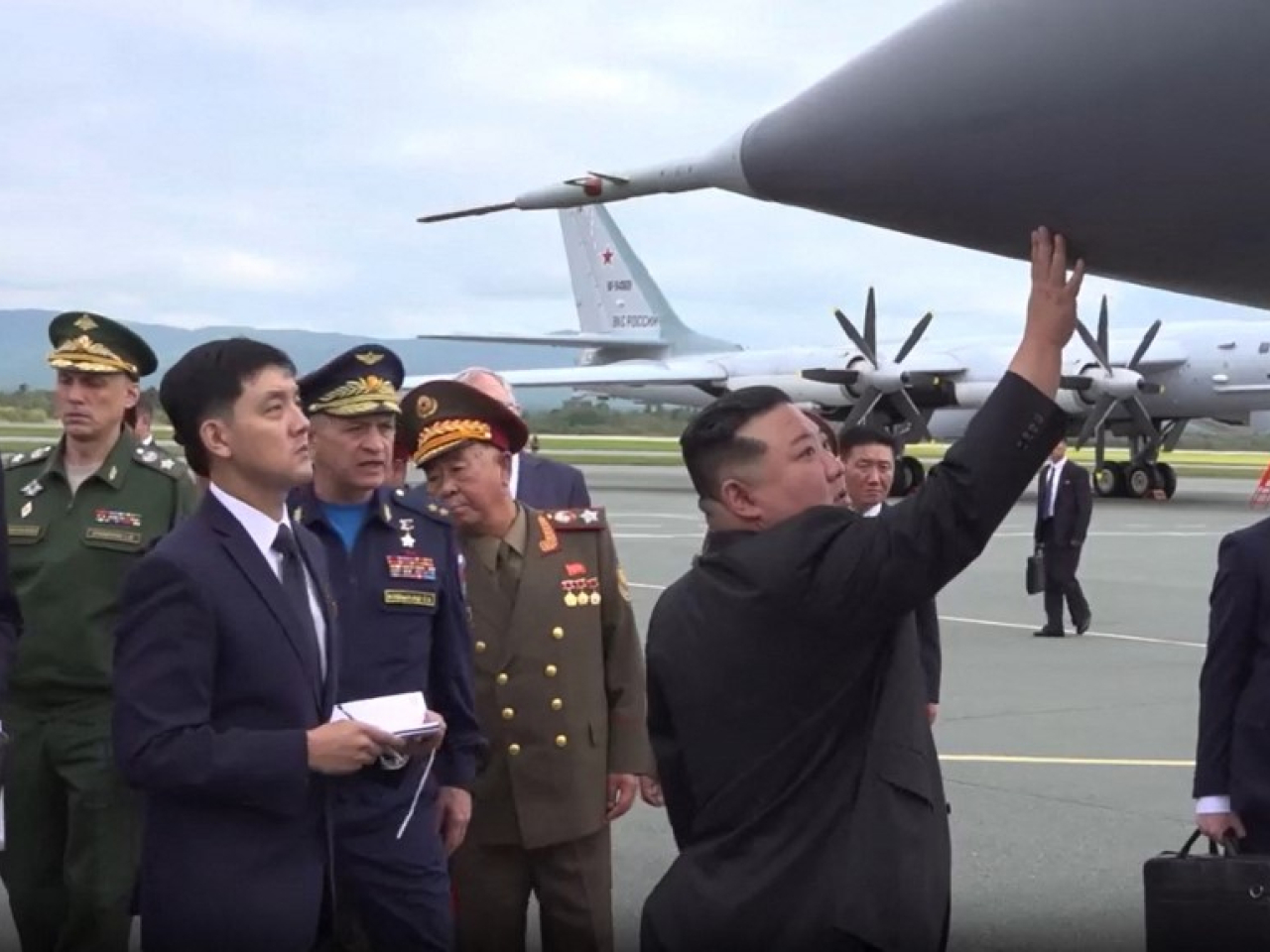 金正恩周六在紹伊古的陪同下視察了符拉迪沃斯托克(中國稱海參崴)的俄羅斯核戰略轟炸機、高超音速導彈和軍艦。