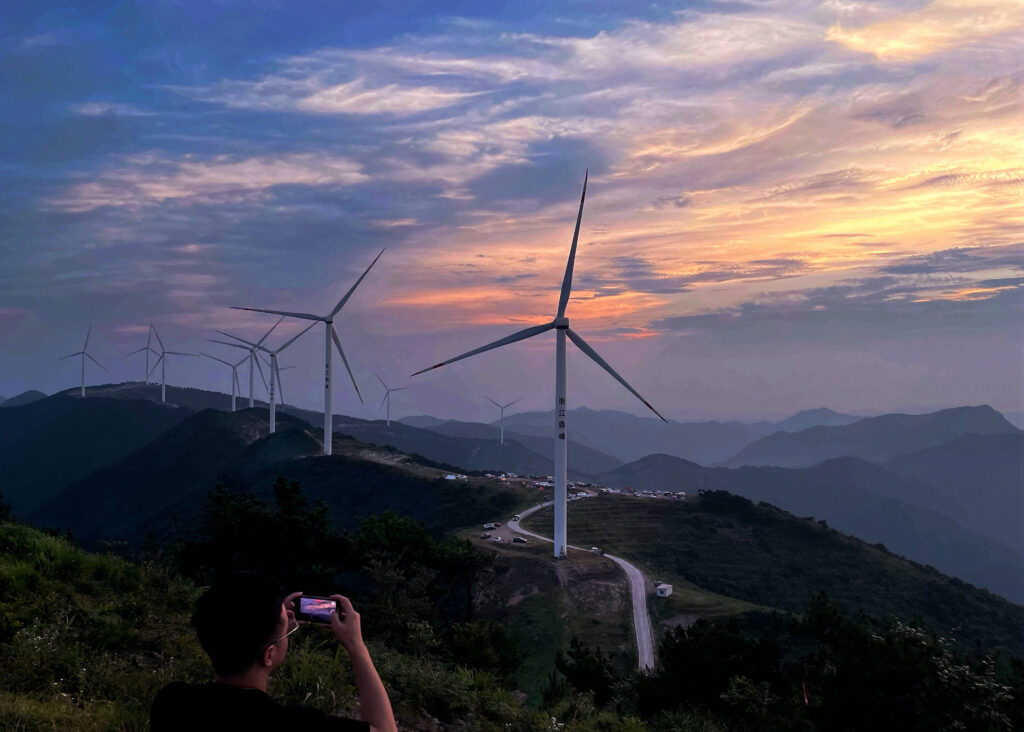作品簡介:浙江青梅尖是磐安第一高峰,以前是荒山,現在是青山綠水風車場,在陽光的照耀下迎風飛旋,壯觀而美麗。