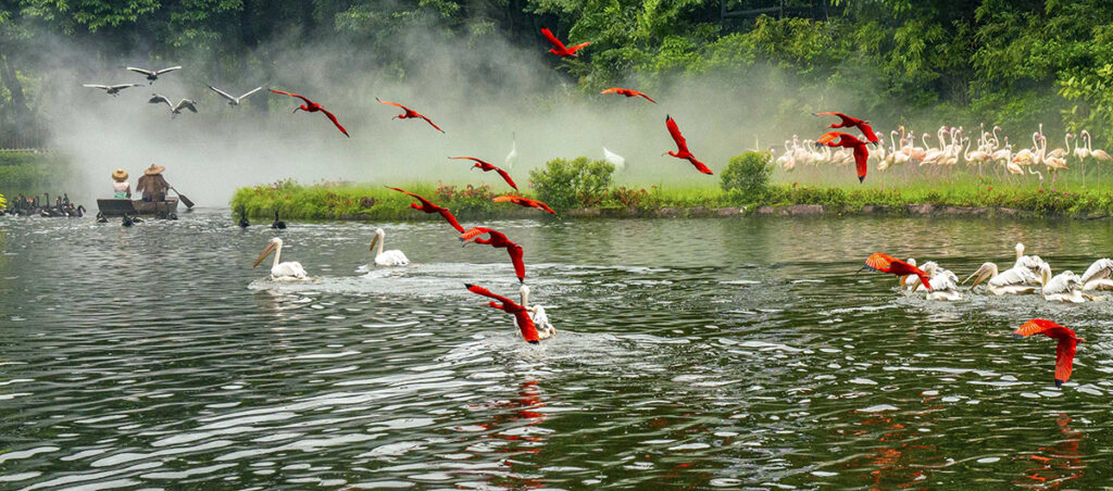 作品簡介:廣東省廣州市番禺區鳥島,自然生態園,出現鳥的天堂景觀。