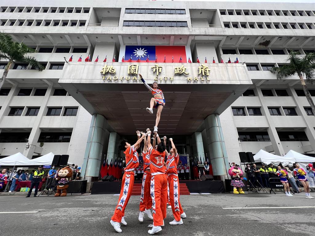 張善政說,今年桃園13個行政區懸掛的國旗數量較往年增加1倍,交通幹道、辦公處所都掛滿國旗,全市旗海飄揚,其中最大的一幅國旗就懸掛在市府大門上方,同時市府也規畫豐富的系列活動,像是桃園眷村文化節、國慶嘉年華市集、國慶升旗線上互動遊戲等,打造不同往年的國慶氛圍,讓國慶的光榮感遍布桃園每一個角落。