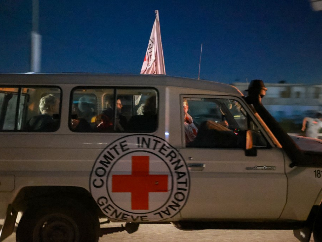 載著13名獲釋以色列人質的紅十字會車輛,當地星期五傍晚經加沙南部的拉法口岸進入埃及,並移交給以色列方面。