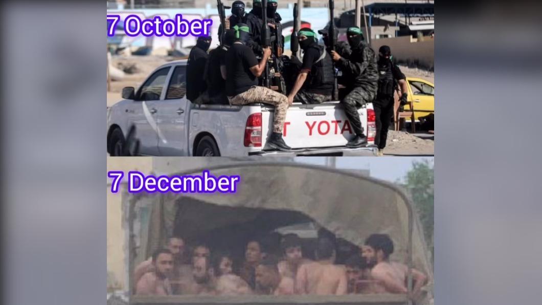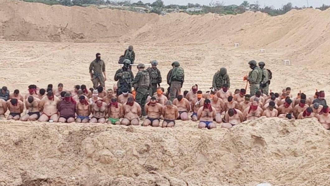 以色列軍隊持續在加沙(Gaza)搜捕哈瑪斯(Hamas),推特等社群平台近日開始瘋傳多則影音和照片,顯示有大批疑似是哈瑪斯的成員,如囚犯般裸上身、只穿內褲跪地投降被逮捕,以軍官兵則在一旁持槍戒備,這些影像快速在平台上被轉發,但無論是英國《天空新聞》或美國《有線電視新聞網》(CNN),至今都無法證實影像實際出處,以及照片實際內容是否符合文字描述。但根據報導,部份中東背景色彩的新聞媒體,卻指責以色列在加薩亂抓拘捕平民,聲稱那些只能穿內褲跪地的俘虜中,有不少人是手無寸鐵的普通平民。