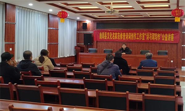 中华时报/中华新闻通讯社河北讯(记者 张彪) 为弘扬传承中华优秀诗词文化,2023年12月16月,河北省曲周县文化名家范修奎诗词创作工作室在县文艺家之家会议室举办了“诗与词写作”公益讲座,县作家协会代表、文学爱好者参加培训。