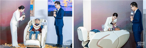 发布会现场,顾家家居副总裁刘宏对产品使用效果现场检验,顾家家居产品经理周利从旁协助,为在场消费者详细展示了产品的使用方法和功能效果。刘总在亲自体验后,对产品表达了高度评价,他表示,欧米伽按摩椅手感细腻温暖、设计人性化、机芯贴合身体、功能实用,体验之后身体获得了极大地放松,心情也随之轻松愉悦。将这样一份温暖和温柔送给太太,给与一份“她自在”,将是寒冷冬季给她最好的礼物。