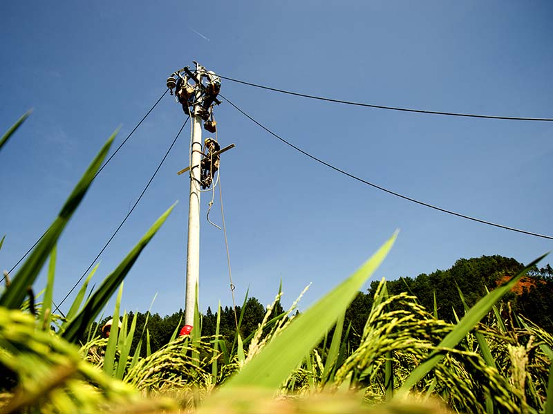 作品簡介:2024年7月27日湖南資興受台風“格美”影響引發洪災,鄉鎮生産生活受到嚴重影響,8月5日長沙國網電力工人烈日下搶修八面山瑤族鄉電力,少部分未受影響的稻田即將迎來收割。