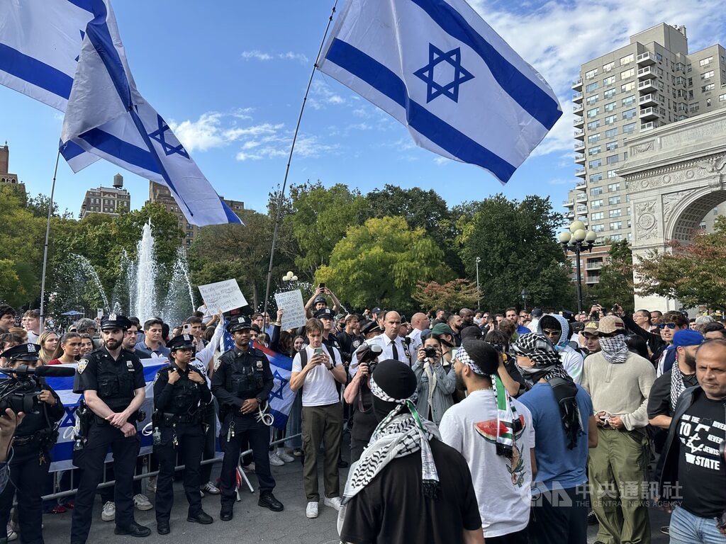 遇上挺以色列人士,警方隔離兩派人馬。中央社記者廖漢原紐約攝.jpg)