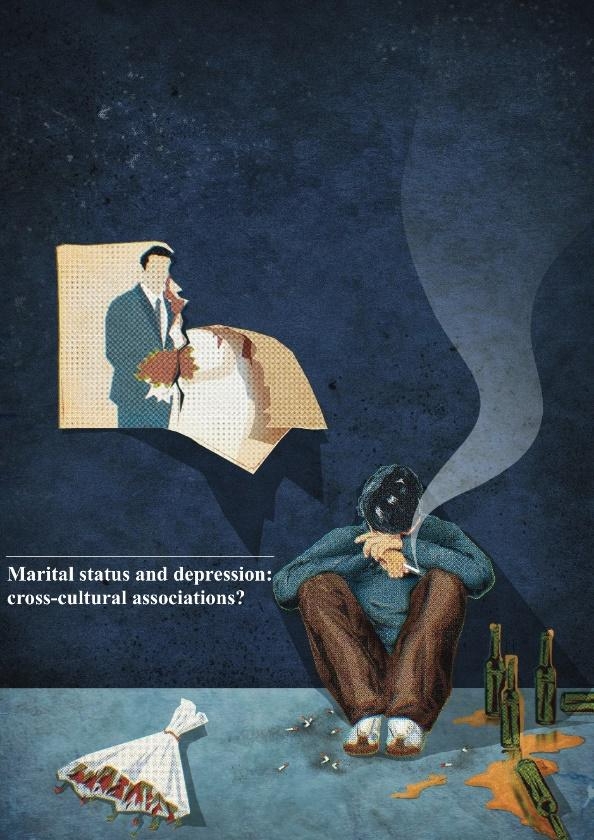 他們發現,與已婚者相比,未婚狀態與抑鬱症狀風險的相關性高79%;離婚或分居個體比已婚個體的抑鬱風險高99%;喪偶個體比已婚個體的風險高64%。西方國家(包括美國、英國和愛爾蘭)的未婚受試者的抑鬱風險,高於東方國家(包括韓國、中國和印度尼西亞)的未婚受試者。