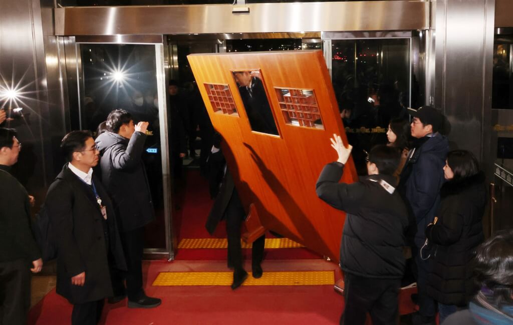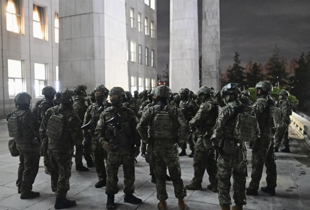 尹錫悅宣布緊急戒嚴後,戒嚴軍封鎖國會出入口,並在直升機降落在屋頂之下,短暫進入國會大廳,似藉此阻止議員進入。