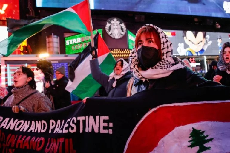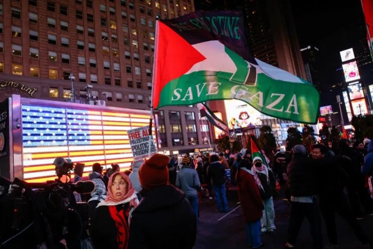 圖集:抗議者在停火公告發布後聚集在時代廣場
