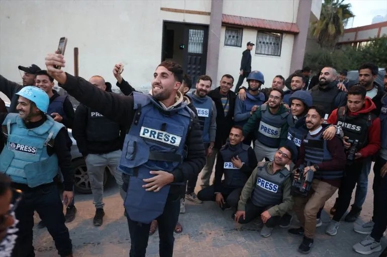 照片:隨著停火的臨近,加沙記者歡呼雀躍