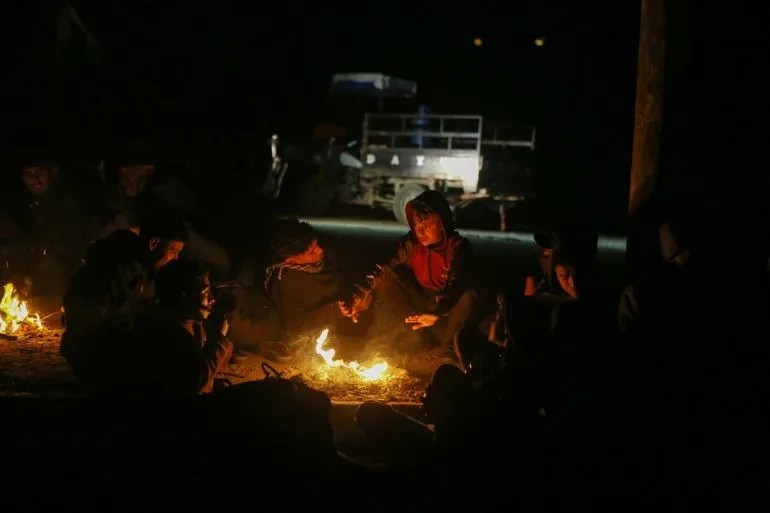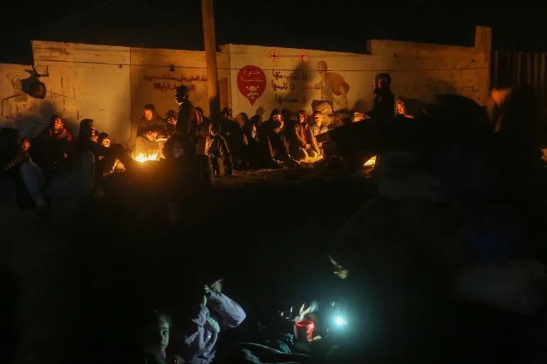 照片:巴勒斯坦人在街頭過夜,等待返回加沙北部的家園