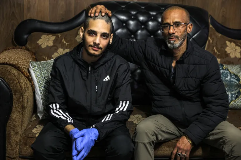 本週五,18歲的里達·奧貝德在被佔領的東耶路撒冷郊區村莊的家中展示了自己被疥瘡感染的身體部位,這是他從以色列監獄獲釋後的第二天