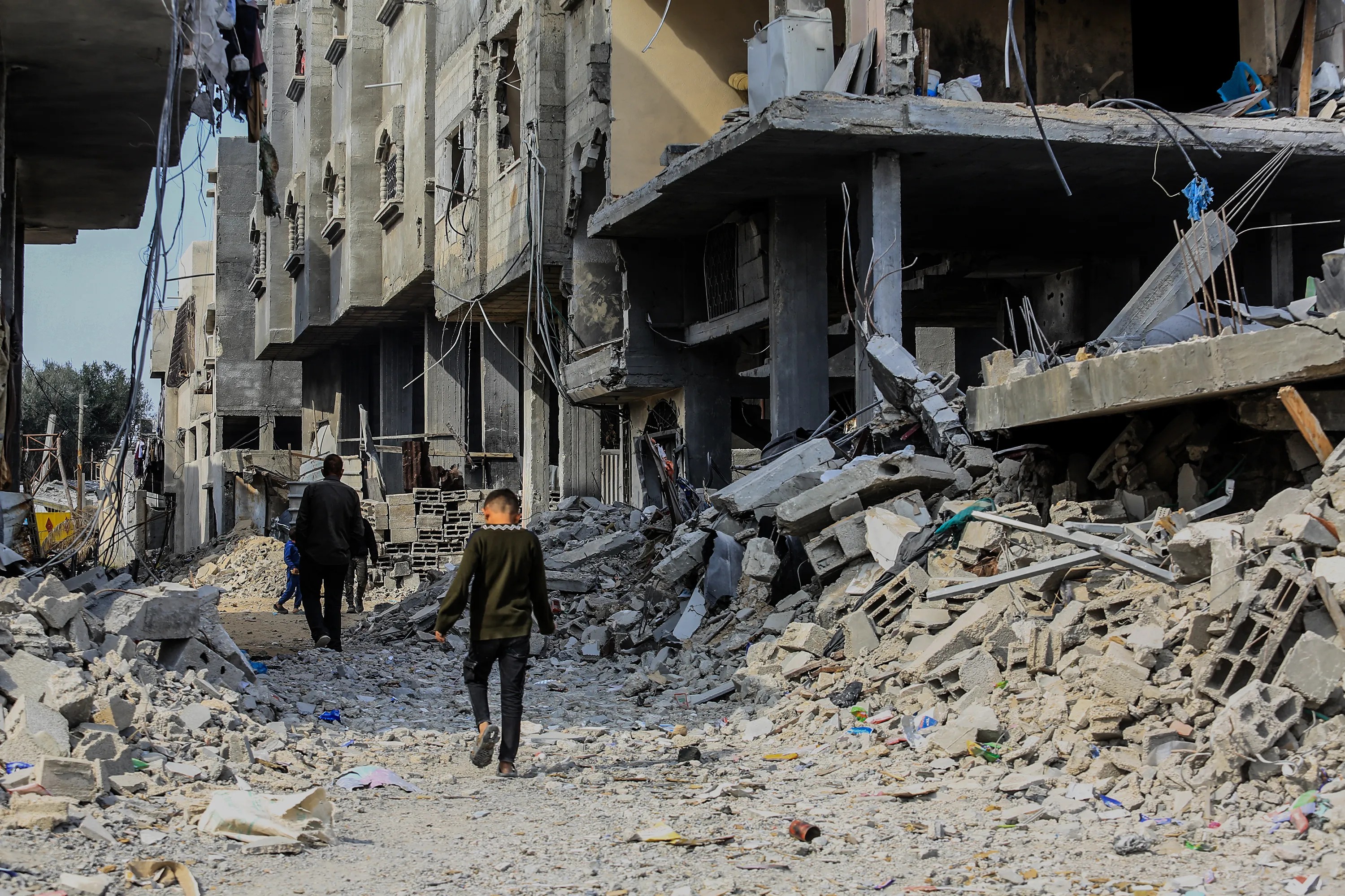 以色列對加薩的轟炸和地面行動使整個社區變成了瓦礫遍地的荒地,建築物的外殼被燒焦,四面八方都是瓦礫堆。