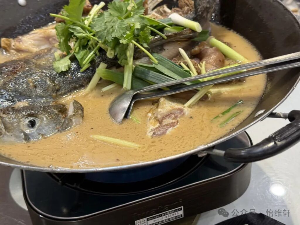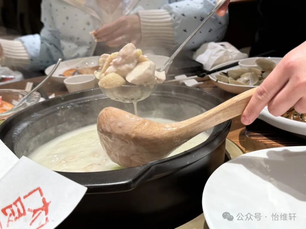 當粥水傾入大瓦煲中,濃郁的米香伴隨著新鮮食材的入鍋,火鍋逐漸散發出誘人的氣息。我們先後放入海鮮與河鮮,待粥水吸收肉汁的精華後,再放入鮮嫩的蔬菜,整個過程宛如一曲精心編排的交響樂。那道名菜“一魚三吃”更是令人驚豔,肥美的魚片、香脆的魚頭與魚骨層次分明,令我唇齒留香。最後,在宴席的尾聲,品嘗那飽含各種食材精華的粥水,仿佛喚醒了心底最柔軟的記憶。