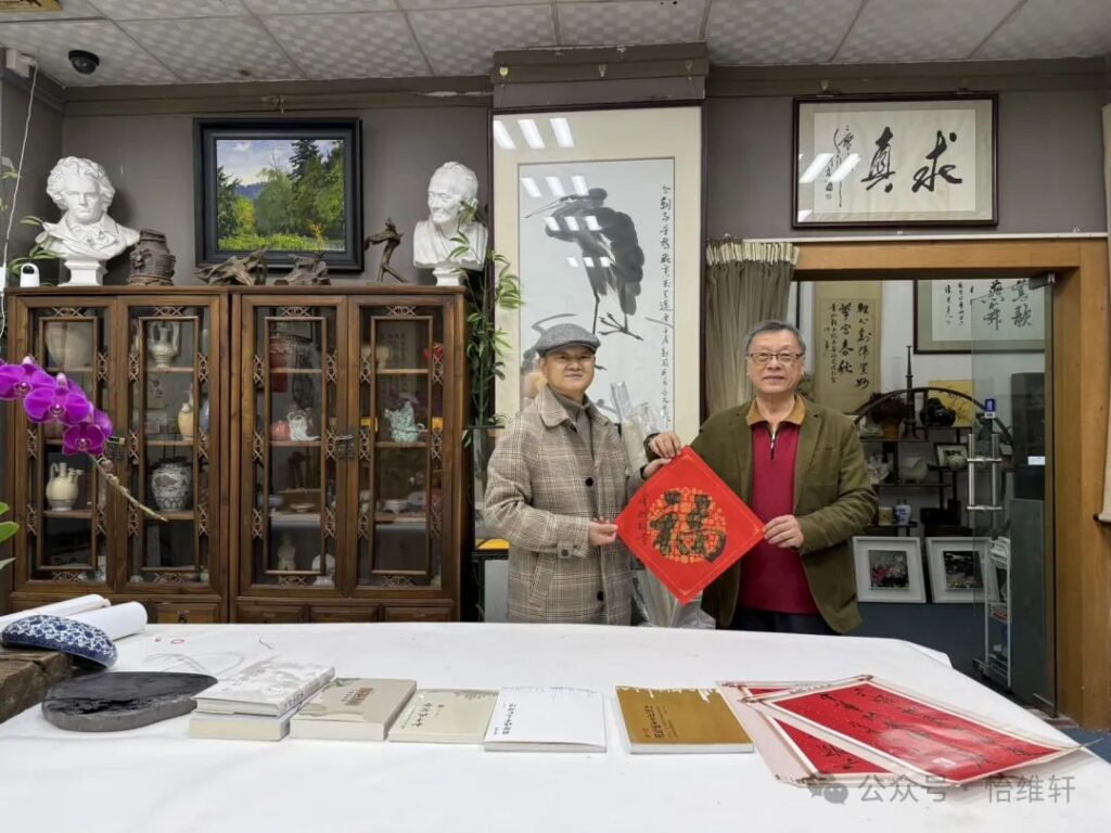 今日上午,我原本與多年老友相約共進午餐,卻因突生變故未能如約,心中難免愧疚。下午,我回到廣州新世紀藝術研究院,探望員工,與久別的朋友閒聊,感受到一股溫暖的氛圍,彼此贈送著春聯,仿佛將祝福與希望傳遞。