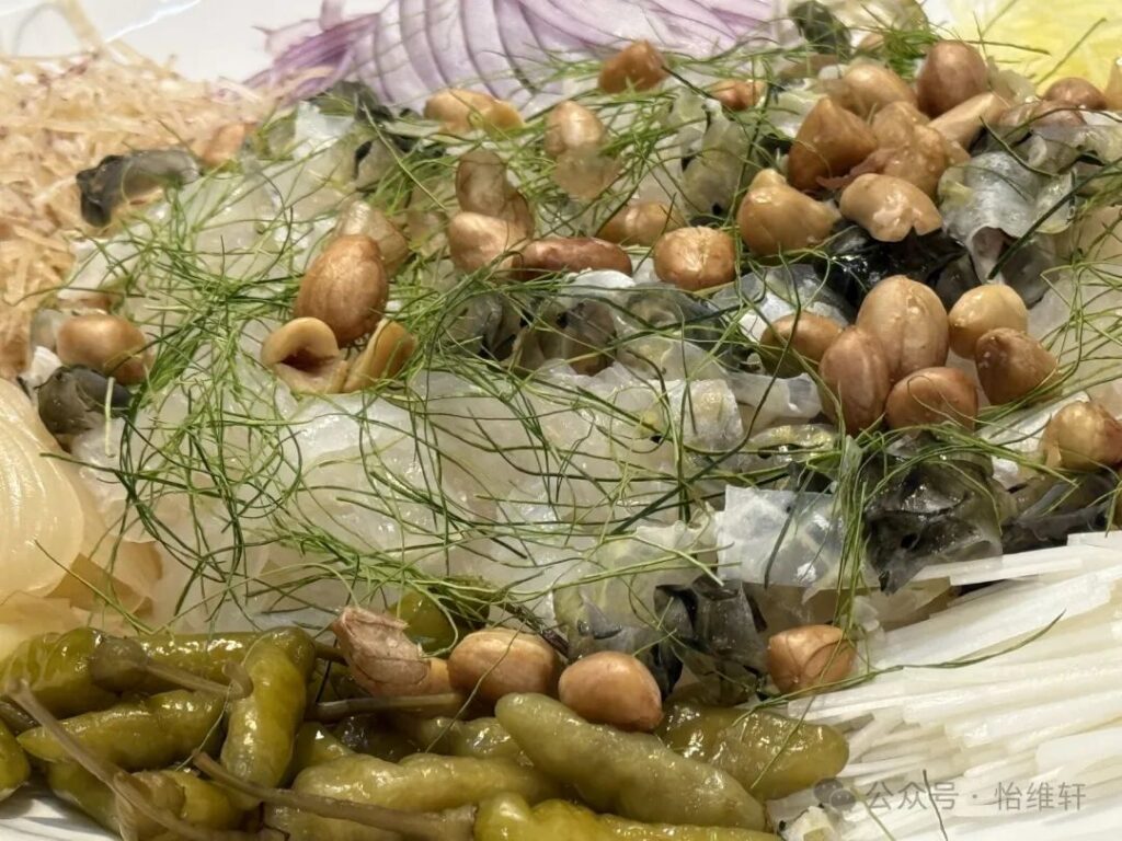 廣東有雲:“無雞不成宴”,我們點了順德的傳統名菜“四杯雞”,因用四杯調料——一杯油、一杯酒、一杯糖、一杯醬油而得名。通過“燜”的方式,雞肉被烹製得金黃油亮,汁濃肉香,皮爽肉滑,令人垂涎欲滴。另一道“順德魚生”則是經典粵菜,薄如蟬翼的魚片晶瑩剔透,恍若一朵盛開的菊花,配以不下二十種配料,赤橙黃綠青藍紫的色澤交相輝映,鮮甜的口感更是令人陶醉。