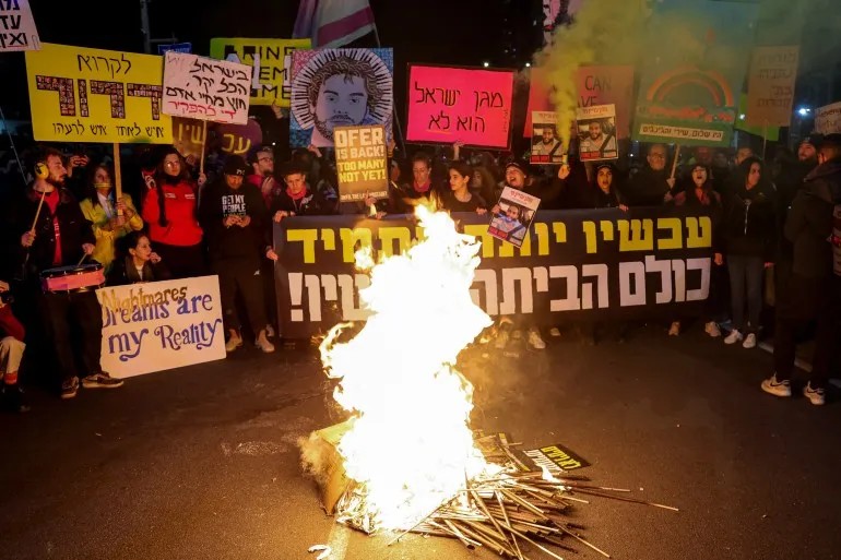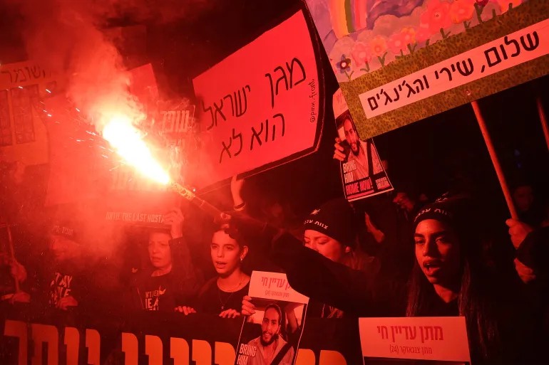 ♦在哈馬斯釋放了停火協議第一階段原定釋放的六名活著的以色列俘虜後,以色列抗議者在特拉維夫集會,呼籲歸還所有剩餘的俘虜。