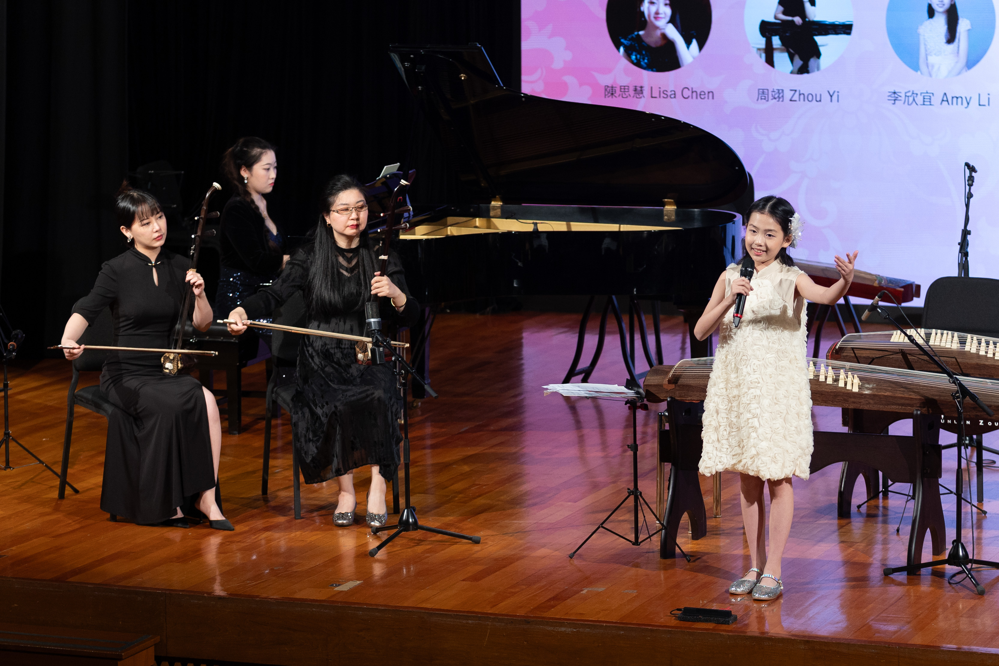 活動當晚,黃國賢副校長及楊立偉副校長與校董會成員、師生及音樂愛好者齊聚一堂,共同欣賞鄒博士的精彩演示。鄒博士不僅展示了古箏的演奏技巧,還與其他藝術家如鋼琴家Lisa陳、二胡演奏家周翊等展開了一系列精彩的音樂交流。