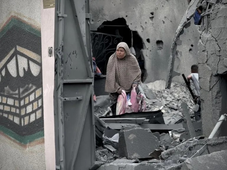 照片:以色列襲擊加薩南部汗尤尼斯後的情況