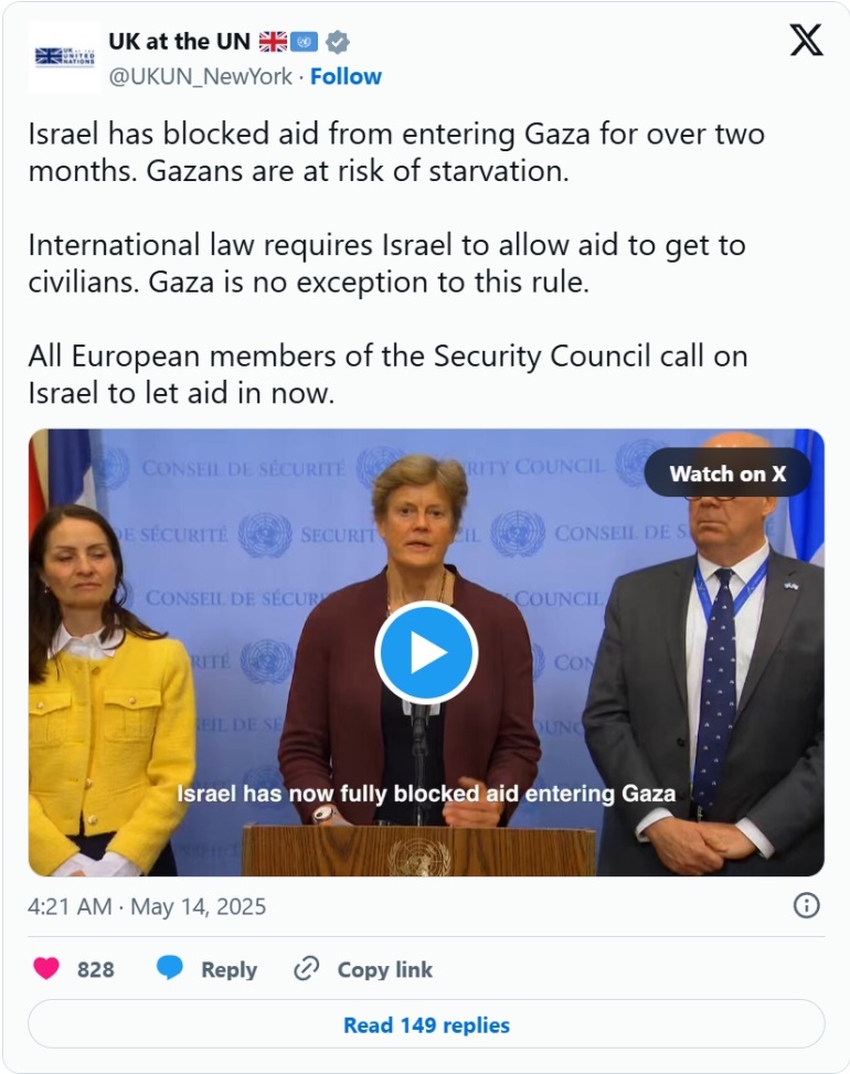 英國駐聯合國特使芭芭拉·伍德沃德告訴安理會,以色列必須解除對加沙地帶的封鎖,目前封鎖已進入第十周。 她指出,世界領先的饑餓監測機構已警告稱,加沙地帶全境面臨饑荒風險。