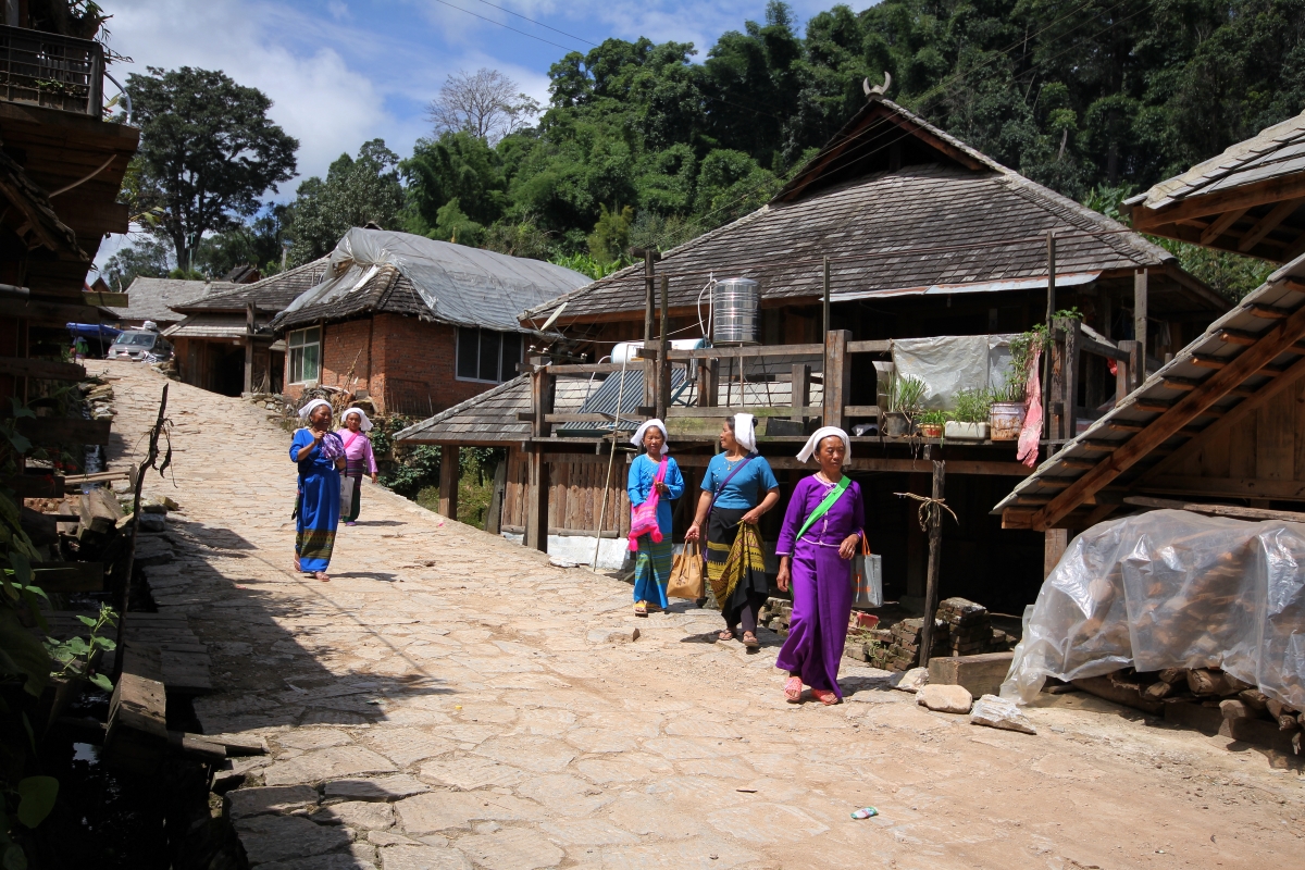 我先後去過景邁山兩次,兩次都在糯幹寨投宿。第一次是好幾年前的事了,當時寨子裏還沒有旅店,接待我的是一戶做茶的傣族人家,吃住都說不用開錢,硬給,他就放下臉了,說不夠朋友,只好臨走時與他買了幾斤茶葉,帶走留念,同時也算對這戶人家的熱情表示感謝。今年再去,寨子裏已有一家旅店,住下來之後感覺很好。木質的樓梯攀緣著開花的藤蘿,站在陽臺上,遠山近水盡收眼底。特別是清晨,起床有些遲疑,陽光就會從窗子裏飄落,一掃徹夜長夢後的昏昧,花的香息是每天賜你的一份厚禮。