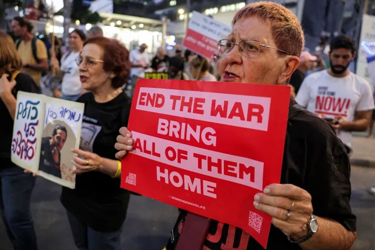 內塔尼亞胡面臨來自國內外的巨大壓力。在國內,以色列戰俘的家屬已經抗議了近650天。