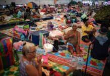 泰國與柬埔寨士兵發生衝突後,逃離到泰國素輦省(Surin)避難的民眾。(美聯社)