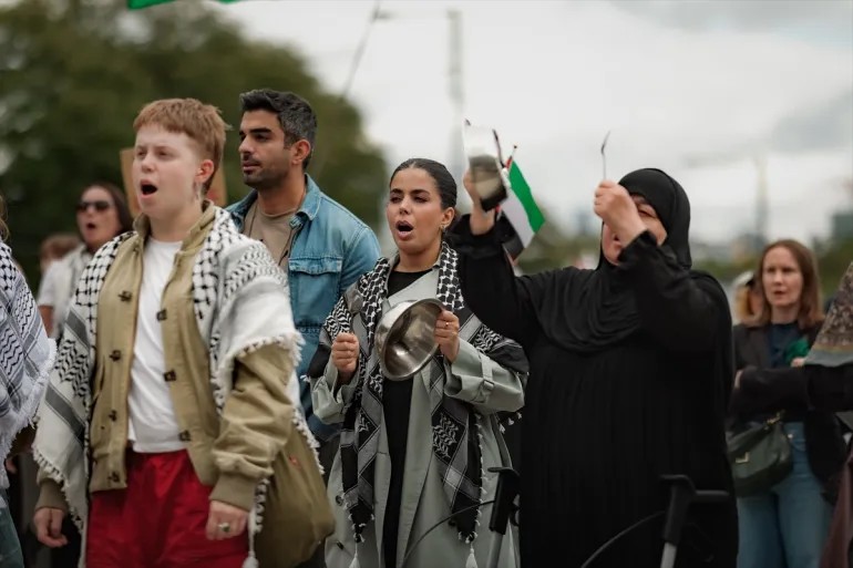 圖:挪威民眾在奧斯陸抗議並呼籲從以色列撤資